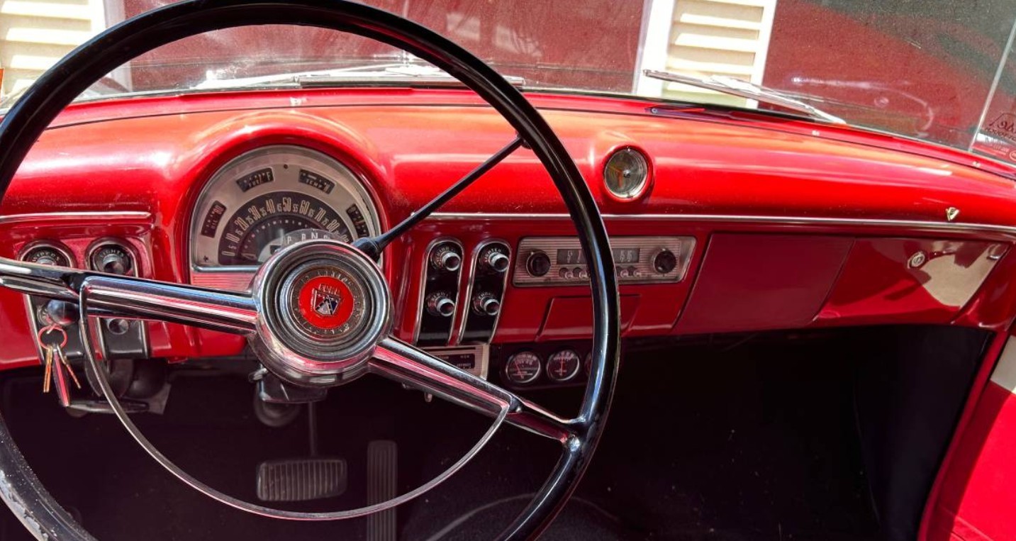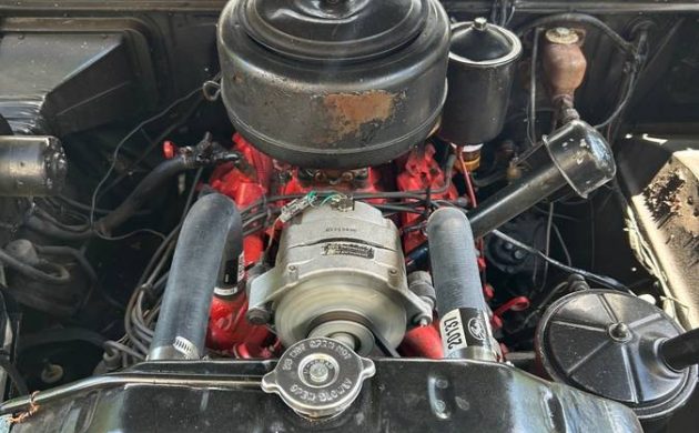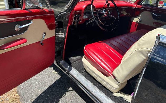 The Crestline was produced from 1952 through 1954, making way for the Fairlane in ’55. For the first two years, Ford utilized its tried and true 239 cu. in. flathead V8, but in ’54, the company shifted to its exciting new OHV Y-block V8. The car retains its original 239 flathead, and the seller notes that the odometer has registered only 70k original miles. New hoses and a shiny radiator cap indicate someone’s kept up on maintenance, but for details, we’d need to consult the seller. The Crestline was offered with a three-speed manual with or without overdrive, or the company’s relatively new Ford-O-Matic automatic. This example has the automatic and power steering – desirable options for the day.