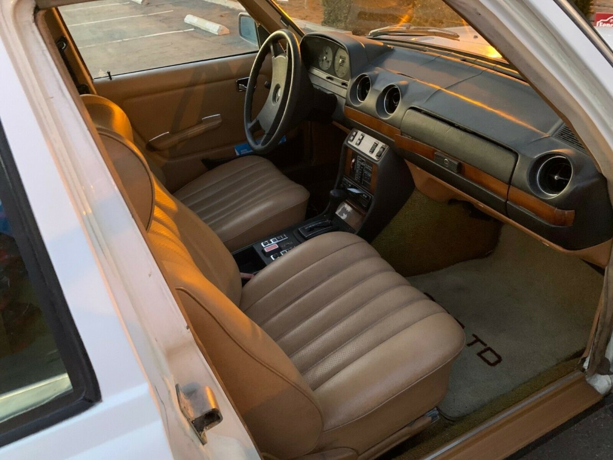The interior is still classic W123, with hard-wearing MBTex seating surfaces and door panels. The backseat is gone (obviously) along with the rear doors. That, to me, is one of the more impressive details: it looks like the original builder went through the trouble of sealing and filling in where the original back doors resided, so no obvious line remained after the bed was installed. The cabin appears to be in decent shape, but the dash is obviously cracking and needs replacement if you’re a perfectionist. It looks like some of the wood trim is missing around the center stack, too.