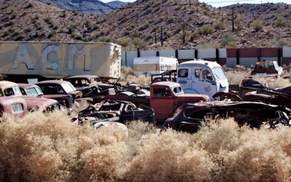 I was in Salome, Az. in January. A sad but true place. Cheap place to retire though. Wonder how many rattlesnakes are in those cars. Yikes.