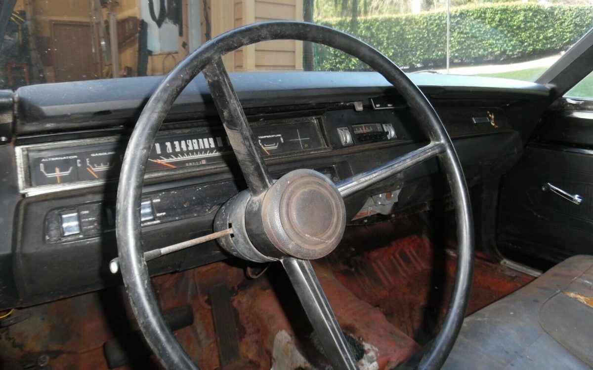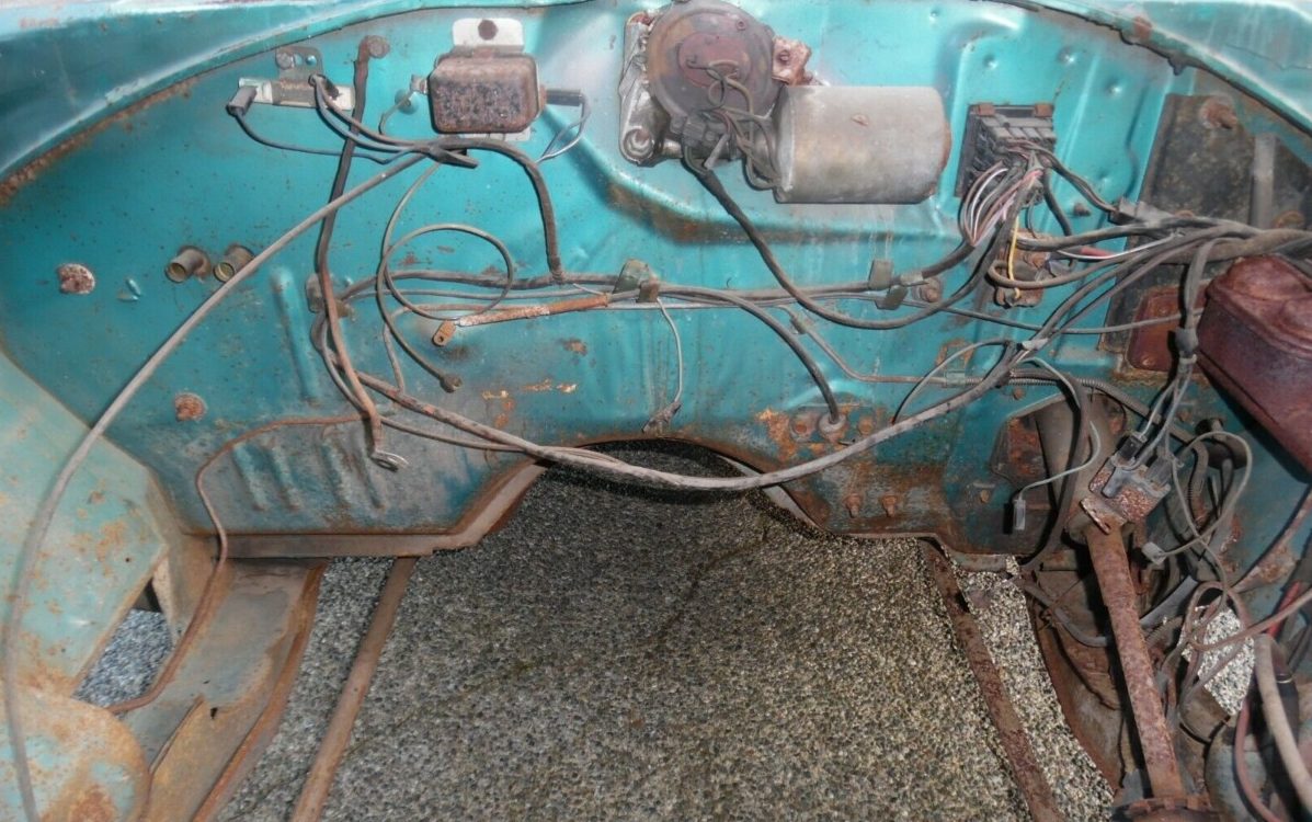 The exterior of this Bird is worn but straight and intact. The seller advises that the trunk floor and rear quarters will need some steel replacement work. This Plymouth is still wearing its original Q5 finish, also known as “Sea Foam”, which the seller advises is rare with a 2 to 3% take rate. This Roadrunner is based on the Belvedere two-door sedan (“B” pillar coupe) which gives this Roadrunner a purposeful look as was intended at its ’68 introduction. The biggest concern observable is the underside. Some time back I was introduced to the concept of “non-invasive surface rust” Well, by definition, I would assume that surface rust isn’t invasive. But I think what the coiner of the term was trying to say is that as the surface rust progresses and progresses, it becomes invasive. And the underside of this Roadrunner looks like it’s headed that way. The seller claims, “Solid frame rails, solid floors” and that may be the case at this moment but it looks like its starting to turn and will need attention to arrest any further degradation.