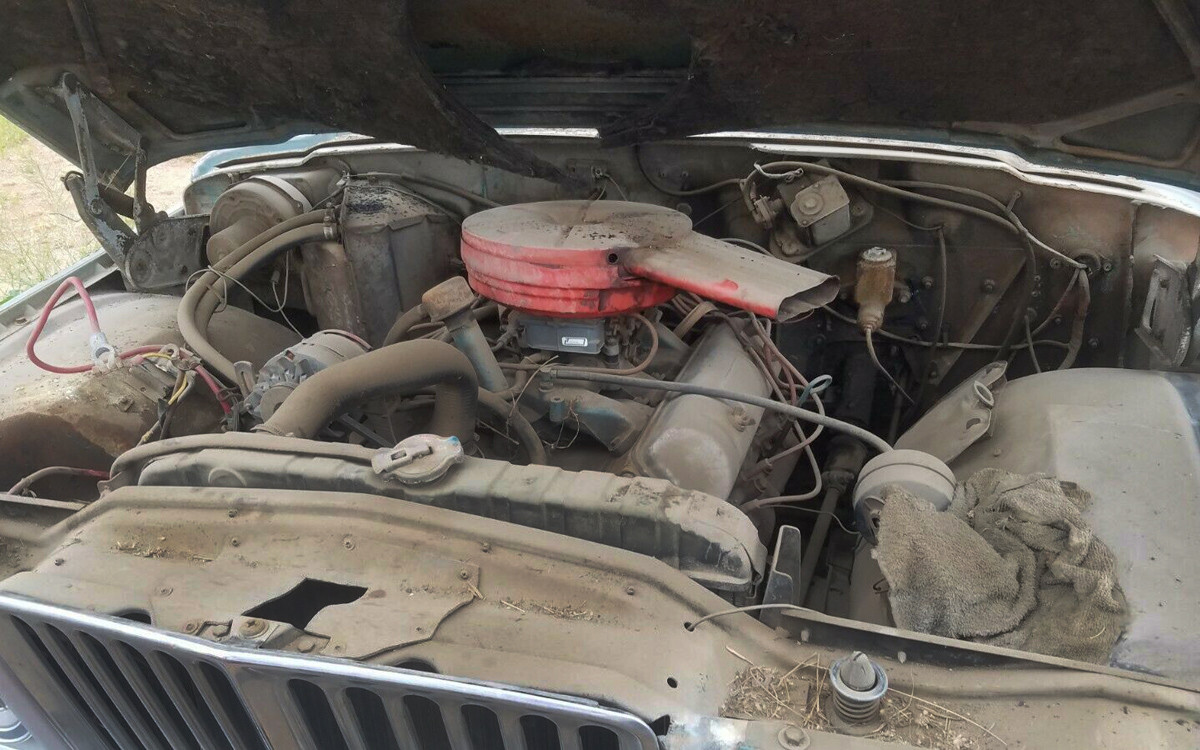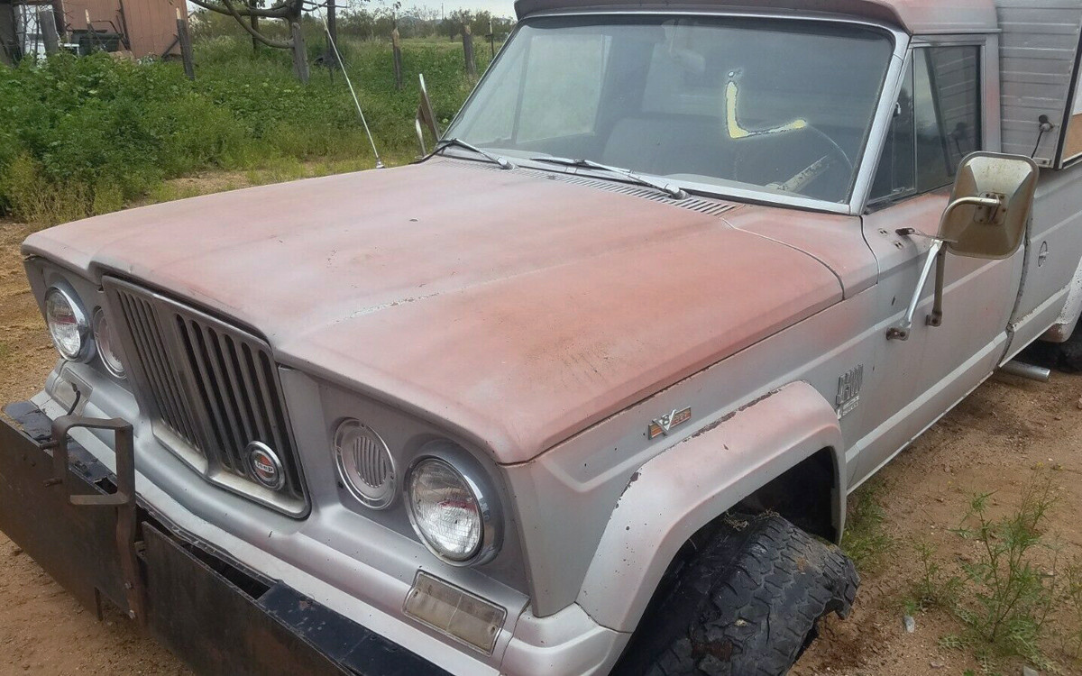 The engine is AMC’s Vigilante 327 cubic-inch V8 with around 250 hp, and it runs, according to the seller. They will send you a video of it driving if you give them a jingle with that $100-a-month thing in your pocket that you use for everything but calling. It looks dusty and dirty, and I always worry about rodents in the southwest, but hopefully no damage has been done. This really looks like a great, solid project for anyone who has been looking for a classic small-grille Jeep.