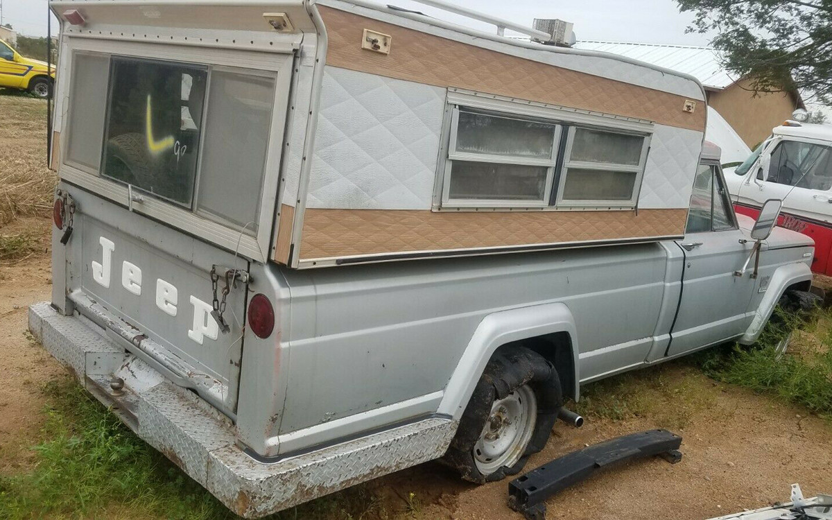 WOW ….my 1st roadworthy vehicle was a 1970 JEEP J4000 w a Buick 350 Dauntless and an automatic transmission and 4 wheel drive and 16000 original miles and the same style goofy topper shell mine was a Winnebago ๐