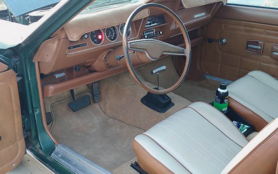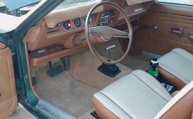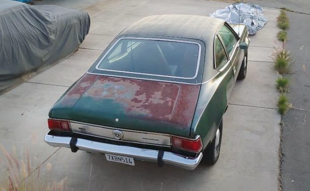 There it is in all its blazing, sunburnt glory. How great does this car look, otherwise, though? Very great, that’s how great. The remaining green paint is duller than Andy Griffith trivia night at my house. Otherwise, this car looks outstanding to me, inside and out. I’m normally a notchback fan, but I really like the detail of the hatchback with part of the vinyl top on it.
