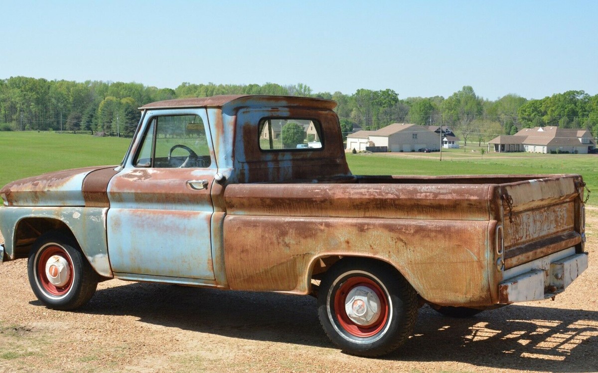 The seller says that this 1966 Chevrolet C-10 short bed pickup was bought brand new at a dealership in Arkansas on December 31, 1965 and it stayed in the same town for 55 years. That’s cool, and despite the heavy “patina”, as they say in 2021, it looks rock solid. They have it listed here on eBay in Eads, Tennessee and the opening bid price of $9,999 hasn’t been clicked on yet. There is also a buy-it-now price of $11,500 listed.