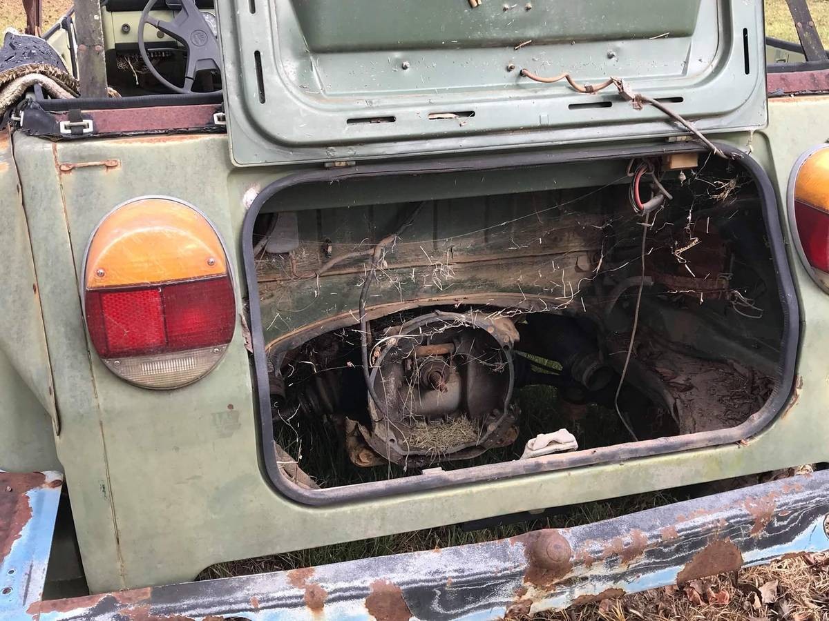 The paint is said to be original, which is amazing considering how many have been over-restored or simply rattle-caned in someone’s backyard once the original paint got too tired. I’m curious what the original paint code would have been, as this olive green color seems more fitting for an ex-military vehicle than anything that left the showroom. While I would like to know the specific areas of rust, the Thing overall presents itself as a usable driver.