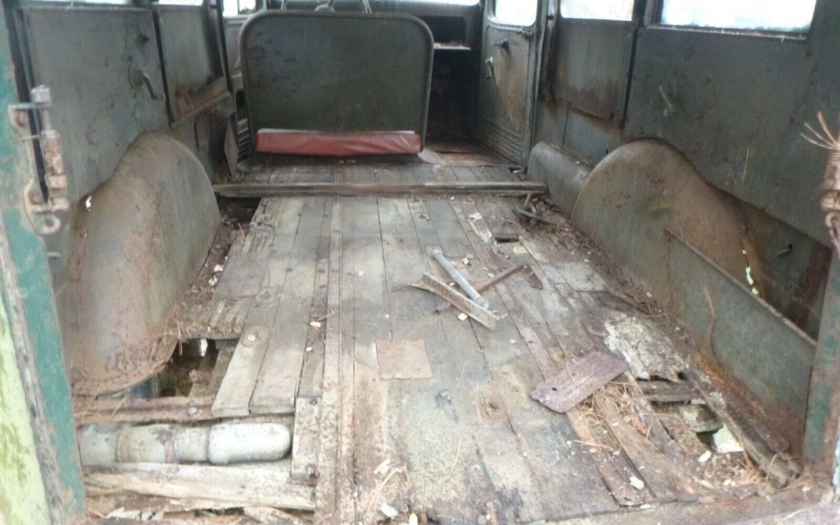 Here is the only decent photo of the driver’s area. You can tell the gauges, steering wheel, and shifter are probably original. There is a bit of daylight poking through by the pedals, but that’s not uncommon for these trucks (and military vehicles in general). If you need some inspiration for this project, check out this 1942 Power Wagon that sold at Barrett-Jackson in 2018.