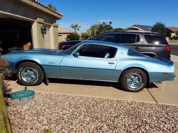 Pat L. found this beautiful 1976 Pontiac Firebird Formula 350 and sent it to our attention. The car is located in Surprise, Arizona just northeast of Phoenix. It is being sold by the 2nd family to own the car here on Craigslist. The seller is asking $13,500 and the ad has only been posted for 2 days. The car has been repainted at least once and is believed to be on the second trip around on the odometer with 83,000 currently showing.