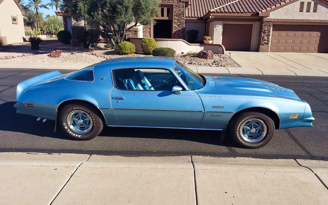 The Formula 350 rides on factory 15×7 Rally II wheels that have been powder coated to match the Code 24 Artic Blue paint. The dual hood scoops on the Formula always look cool and the 1976 design is a one-year-only look. This looks like a nice driver for a decent price in today’s market.