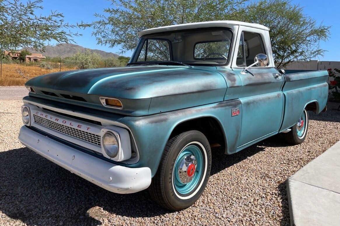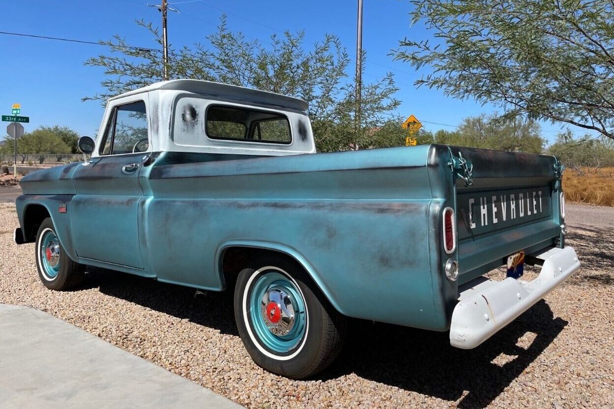 I have always liked these mid sixties Chevy trucks. In the early to mid seventies I had a company furnished 65. Six cylinder with three on the tree. It got the job done and as I remember was a comfortable ride whether loaded or not. I’d like to own this one. But I’d want to return to the original paint scheme. I agree with others that the “patina” on the rear of the cab on each side of the window looks contrived. I have nothing against real patina. My 1952 Plymouth has it’s share. But it has been acquired over 71 years. This truck looks like it had fairly decent paint before the sander and rattle can treatment. But it’s a free country. To each their own. Any way the new owner decides to go they’ll have a nice old ride. GLWTS.