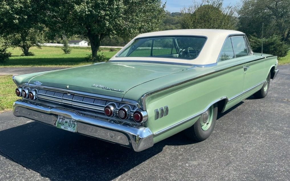 Today’s example is claimed to be 80% original with half of its two-tone Sultana White over code “P” Scotch Green finish dating to its birth at Mercury’s St. Louis, MO assembly plant. Dents, rust, creases, scratches? Fuggetaboutit! The trim appears to be like-new and the bumpers have been re-chromed. Interesting to see are the doggie-bowl hubcaps – years ago they would have been 86’d on day two – now they’re a hit! There are a couple of images of the underside included and they are befitting of an automobile that looks as good topside as this one does.