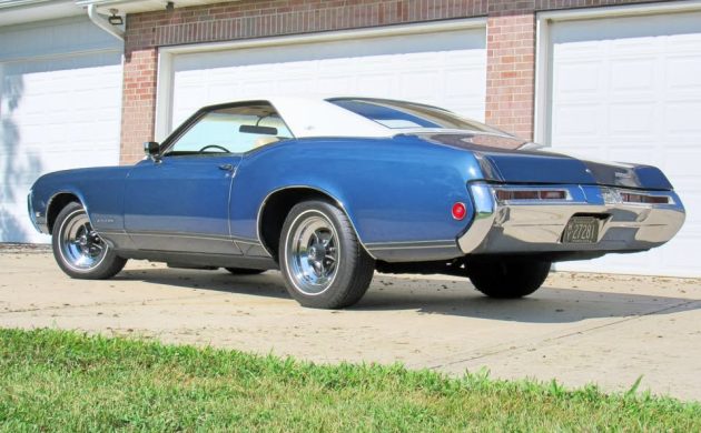 A member of the Riviera’s second generation (1966-1970), the 1969 Riviera was offered in a single two-door hardtop body style, spread across two trim levels, standard (our subject car) and Gran Sport (GS). Sales were brisk, with 52,000 copies finding new homes that year. The seller tells us, “Very clean, original, and good running 1969 Buick Riviera coupe survivor…Body is super straight and rot-free, with solid floors, trunk, and frame. Body panels have minor flaws, chips, and dings since half the paint and body is factory original GM, but the car presents very well as a super clean, correct driver.” The hue is known as Twilight Blue and is claimed to be “rarely seen.” I can’t factually support that claim, but I will admit to not encountering it often on a Riviera. It is said to be 50% original, and everything flows together well; I see no evidence of mismatched panel colors. The white vinyl top is spotless, there’s no evidence of ground-in mung or material fraying. The Buick road wheels are always a standout option, and in this case, they work perfectly with the period-correct, narrow white stripe tires.