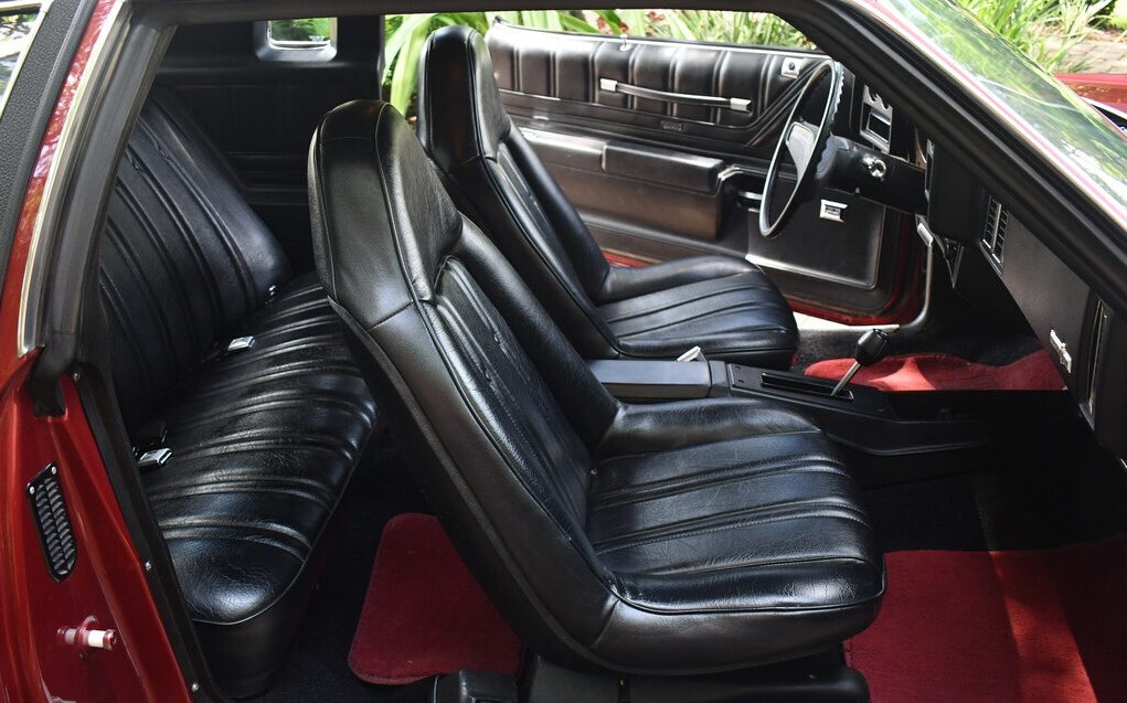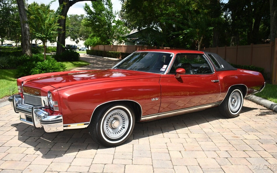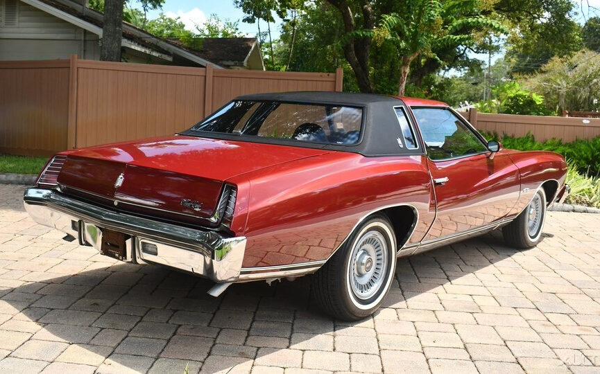 The turn-offs for me with this generation of MC are the Super Fly character lines and headlights, opera windows, landau vinyl top, five MPH front ramming bumper, and emasculated power output, but other than that… The good points? Handling, ride and braking were all pretty sound, especially in a car of this size and a leap forward from the previous generation A-bodies. The Dark Red Metallic finish was incredibly popular in ’73 and the quality of this Chevy’s finish is not to be denied. Original or repaint? The seller calls it a “stunning original” so I’ll let it go at that. Same deal with the half vinyl top, it doesn’t show a single sign of age. Being a “Landau” model means a landau top, accent striping, “Turbine II” wheels, dual racing mirrors (driver’s side with remote control), and all of the requisite badging. There’s no listing back story included but this car has obviously been afforded some significant care over its 49 years of life.