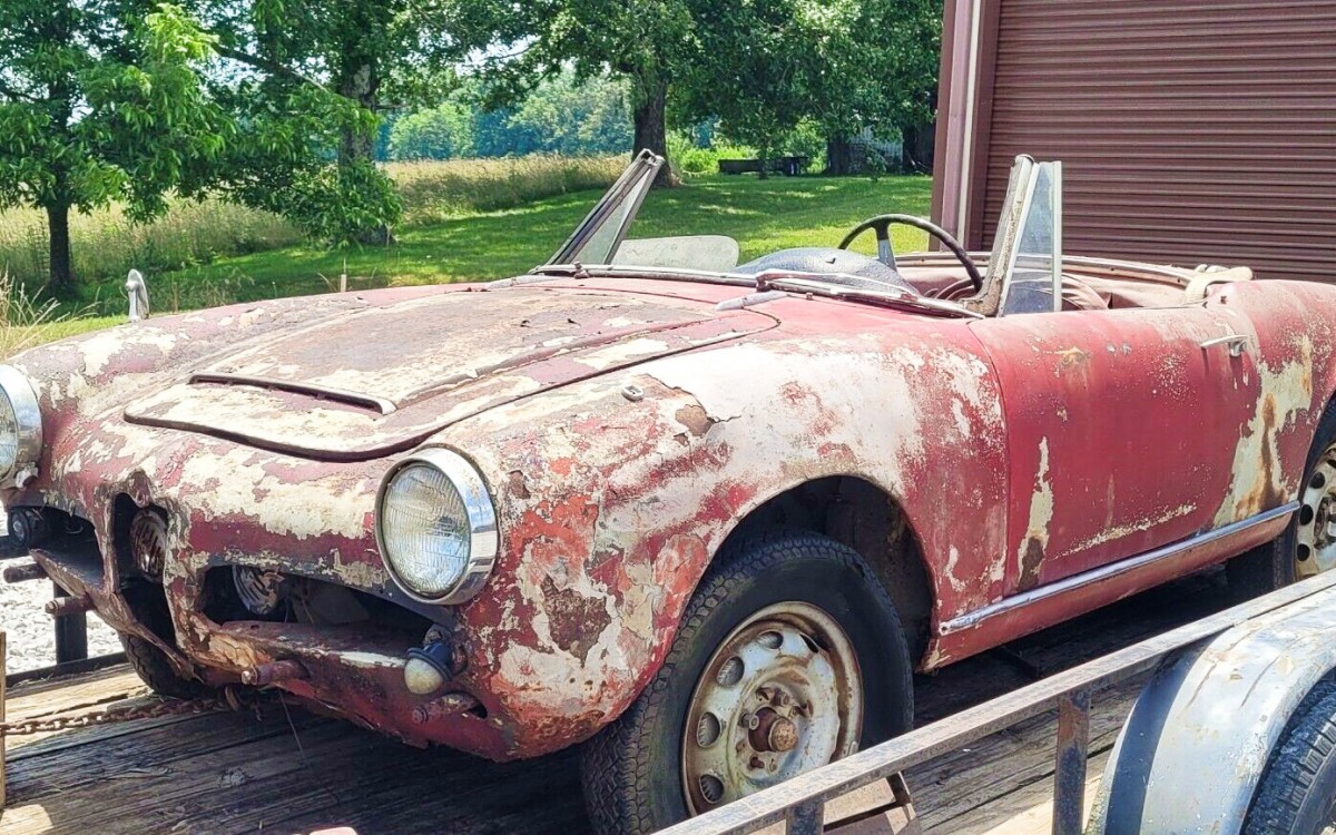 Here is yet another 1963 Alfa Romeo Guilietta; there has been no dearth of them on Barn Finds that’s for sure. And as with most, this example is advertised as a barn find that is for restoration. The listing’s text is light but the images abound so let’s look it over and see how much of a project the next owner will be taking on. This Alfa Spider is located in Cookeville, Tennessee and is available, here on eBay for a current bid of $6,600, reserve not yet met.