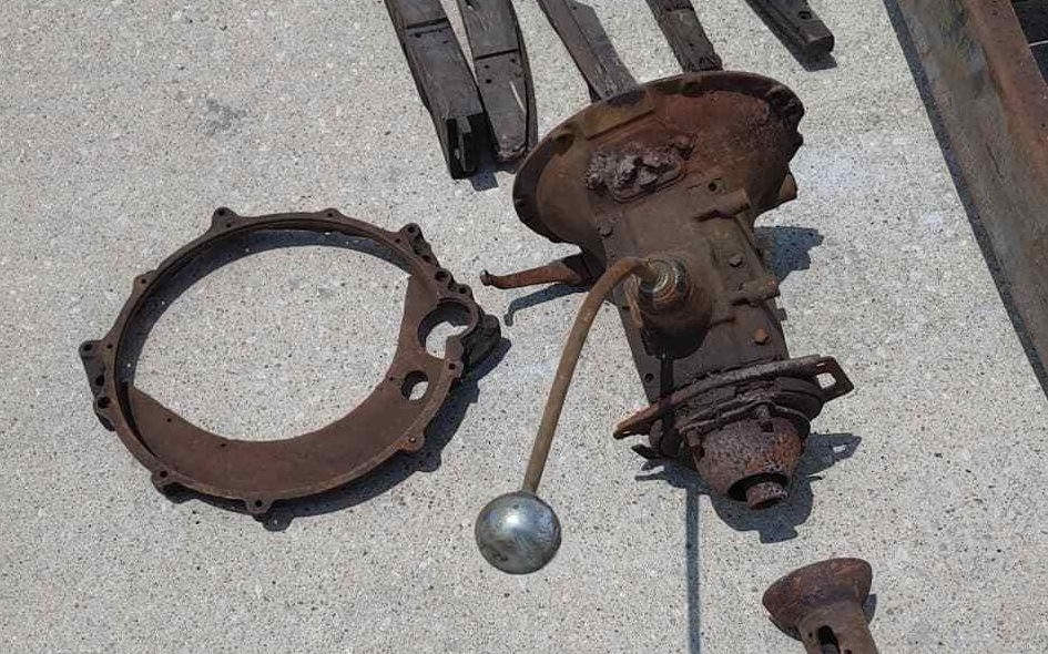 There is no engine included in the sale, but the transmission and adapter is included. The seller thinks the car originally ran a 265 cubic inch Corvette V8 with Offenhauser 3×2 intake and Stromberg 97 carbs. The block and heads were found with the car, but were too far gone to be salvaged and the intake has been sold separately.