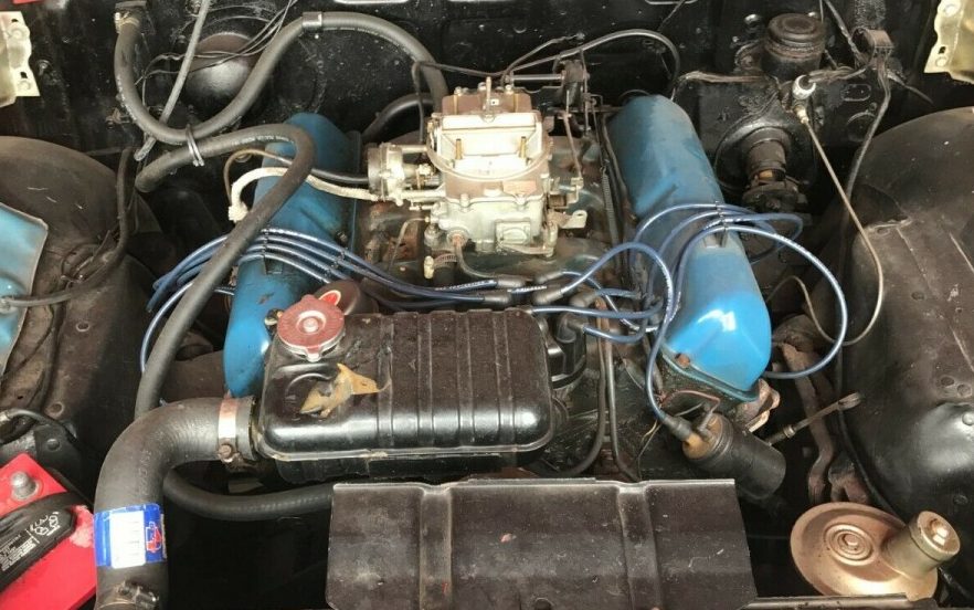 The interior is listed as being original with possibly some redo by the seller’s grandfather. What can be seen presents well. The seller also mentions that the convertible top is about ten years old and the working mechanism is all there and included.
