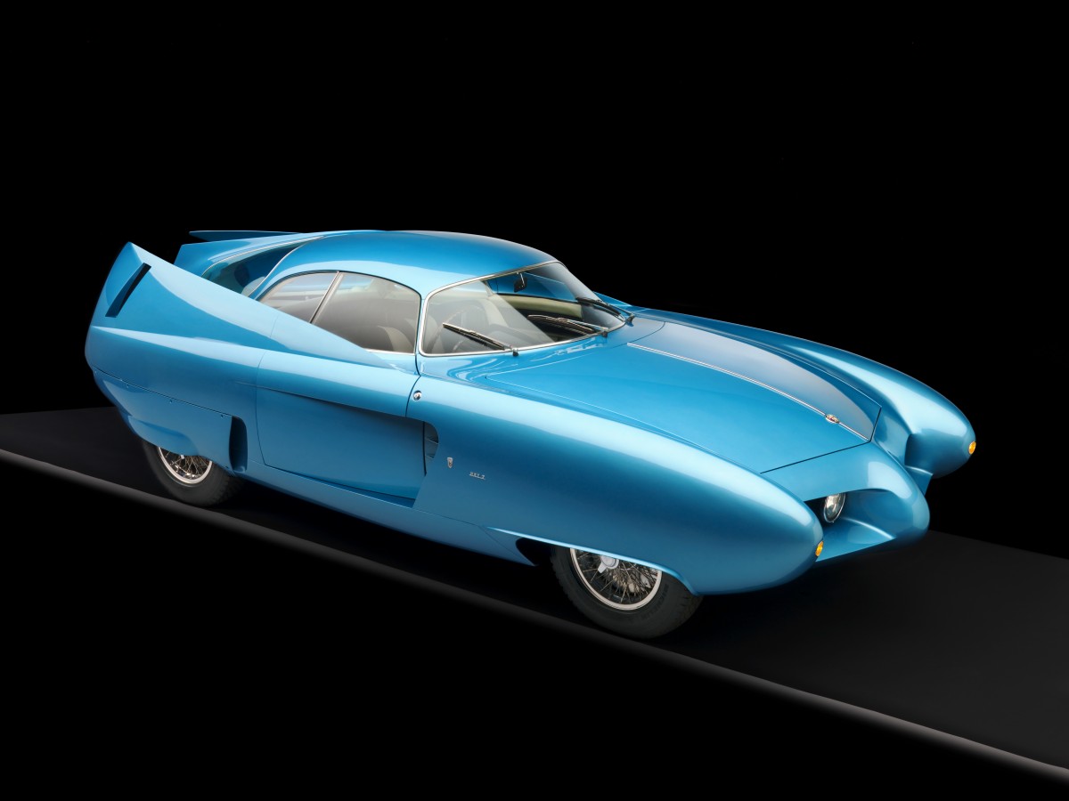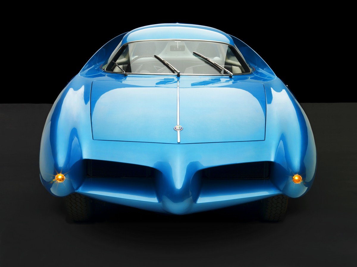 These were show cars. B.A.T. 5 wowed the international press at Turin in 1953. That car was sold to legendary importer “Wacky” Arnolt, who drove it around in Indiana before selling it to a friend in South Bend—who hung it from the rafters of his specialty shop for 30 years. It was finally taken down in 1987 and won a class award at Pebble Beach in 1988.