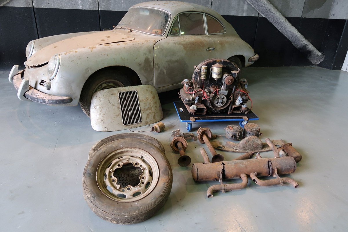 This particular car has been in Australia since new, optioned with the more powerful Super 90 engine when new, along with a green tinted windshield and little else. The current owner’s father purchased the 356 over 40 years ago from the first owner, and as often happens, plans to rebuild the car never materialized. While it was in its disassembled state, the transmission was stolen, but thankfully the thieves left the engine. The 356 was then relocated to the garage it was discovered in, where it had sat since the mid 1970s. Ironically, it was a gearbox problem that led to it being parked, so the thieves presumably grabbed a paperweight.