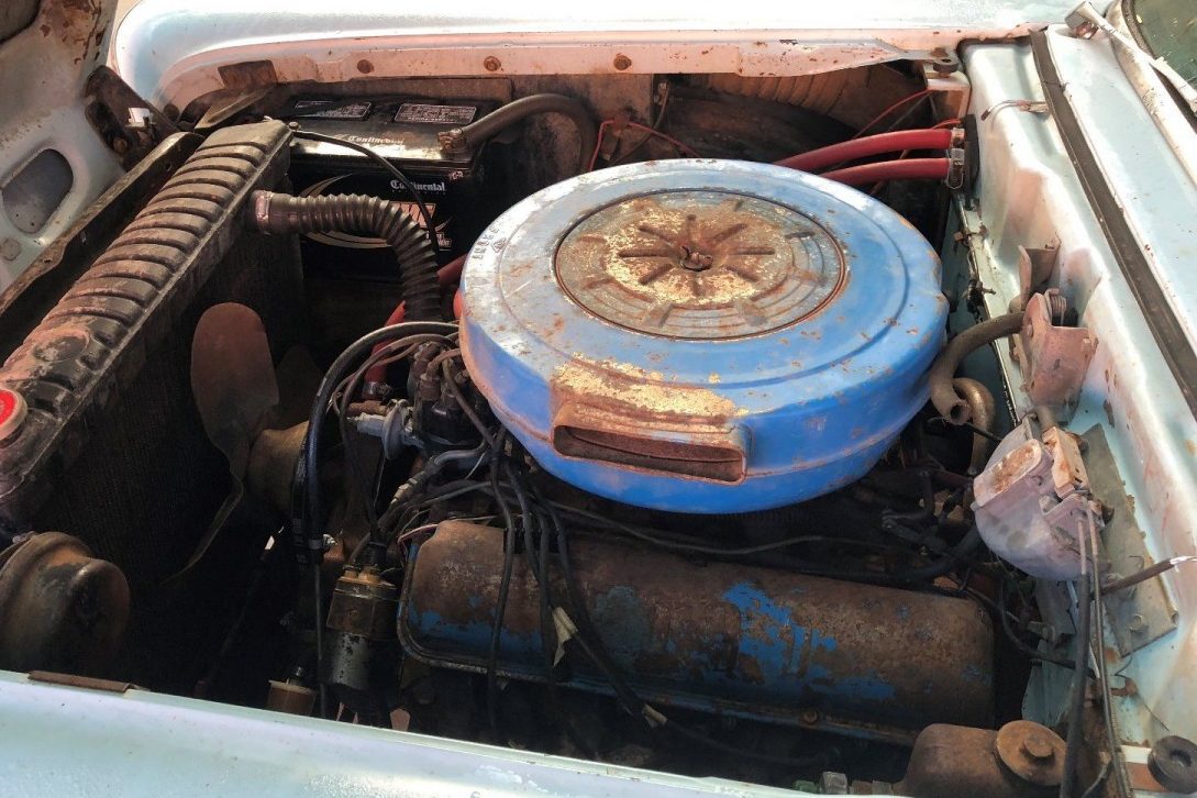 Under the hood is the 352ci V8, which is backed by the 3-speed Cruise-O-Matic transmission. The owner says that the engine currently doesn’t run, but that it does turn freely. It’s unknown how long the car has been sitting for, but it does look as though some attempt has been made to revive the Skyliner. It sports a new fan belt, new radiator hoses, and some new fuel lines and a new fuel filter, so it looks like there will be a bit of detective work awaiting the new owner. The car has been fitted with brand new white-wall tires, which is also a plus.