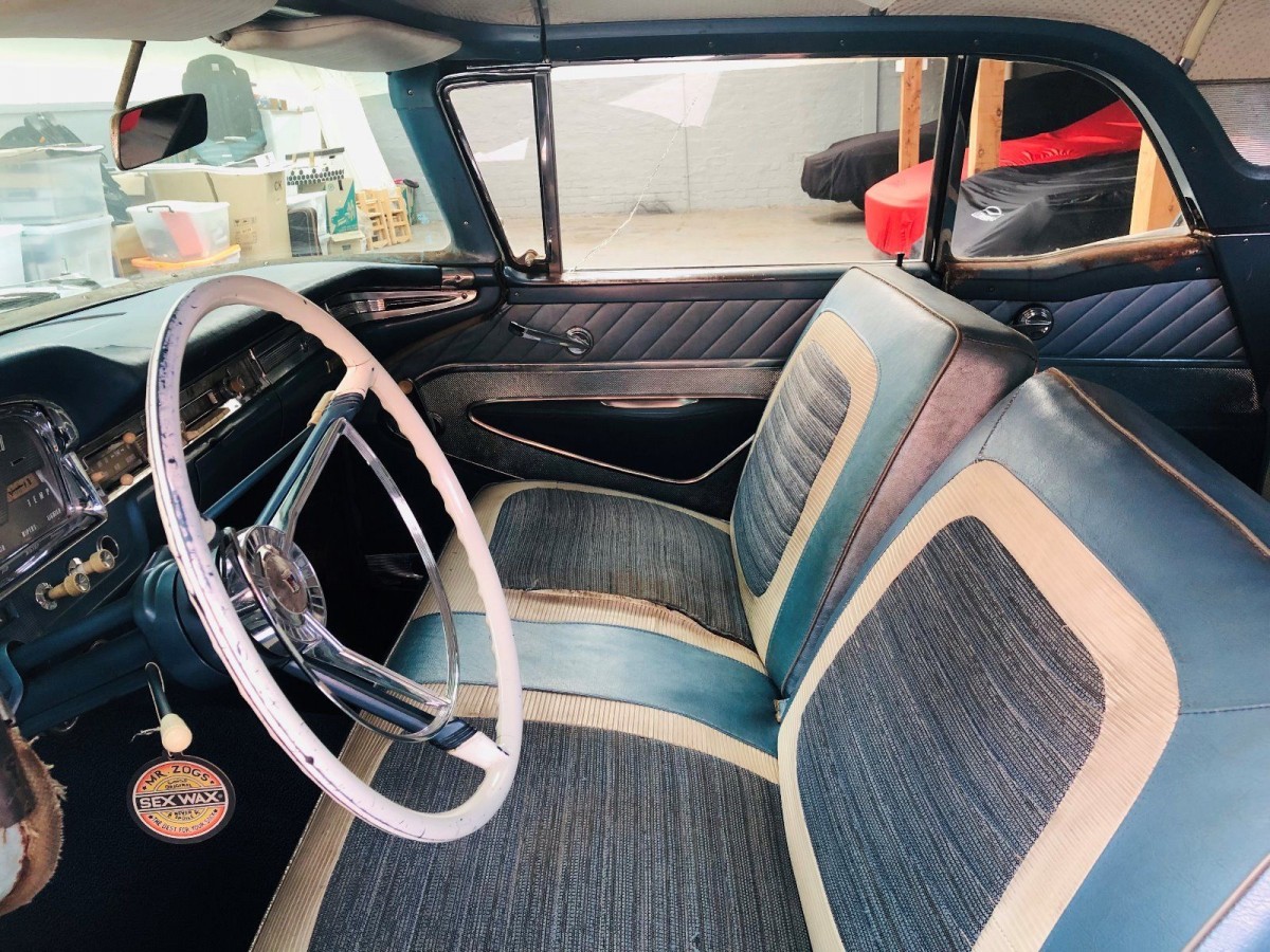 When it rolled off the production line in 1959, the Skyliner was the most expensive car in the Ford range. The base price was $3,346. By the time you added the 352ci engine and automatic transmission, that pushed to price to $3,730. As befits a car of that price, the interior trim was quite luxurious, although there were a few options such as power windows and a power seat which have not been specified on this particular car. In fact, if you added all of the available options to a Skyliner, you could easily push the price past $5,000. The interior of this Skyliner actually doesn’t look too bad. The worst problems are a pretty substantial crack in the dash pad and a seam separation on the passenger side of the front seat. The rest of the interior trim looks pretty decent, and I think that it would come up quite well with a good clean. The new owner won’t need to be too concerned about the carpet, as new carpet has been fitted to the Skyliner.