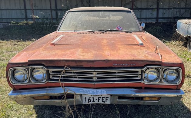 Crushed bumpers and weather-beaten paint introduce this Wylie, Texas muscle car to potential buyers. The VIN and fender tag describe a genuine RM21 Road Runner with the E63 high-performance 383 V8, and this one’s sold “as is” with no… more»