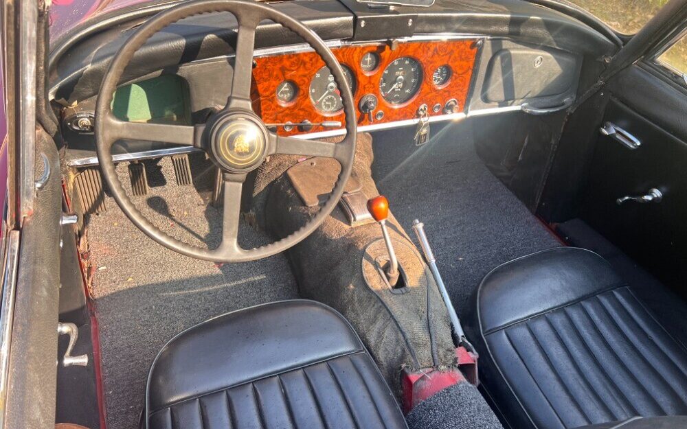 Predating the E-Type, the XK 150 introduced itself in 1957 offering a roadster, a drophead coupe (our subject car), and a fixed-roof coupe. Lasting through the 1960 model year, a bit over 9,000 XK 150s rolled off of the Coventry, England assembly line. Regarding this example, we are told, “(this) is an excellent original example that’s ready for straightforward recommissioning. Red with black interior. Just out of long-term ownership and storage. It’s been sitting off the road for several years… The paint and chrome are showing their age at this time and require attention“. Maybe so, but it doesn’t look bad. The chrome is a bit dull but all of the trim and shiny bits are still attached. It would seem that the images were taken just after bath time so maybe the finish is a little less inspiring – it needs to be inspected when dried. Still, there is no evidence of rot or crash damage.
