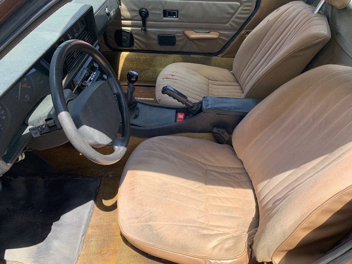 The interior is broadcloth (a money-saver for the tottering British Leyland). The usual tears in the cloth, wrinkling in the panels, and fading are present. None of these can necessarily be blamed on lack of care: keeping a TR7’s condition stable is a battle. They deteriorate before your very eyes.
