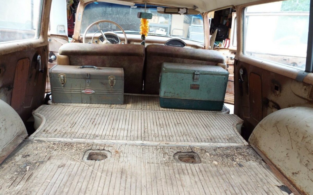 The only thing which makes this 210 look like a surf wagon is the incorrectly mounted surf board. It’s rust-free and there’s no rust out except for where it’s rusted thru. The all new aluminized steel exhaust which was installed with glasspacks might be new to the seller but it’s not new to car. Any originality has been long lost just like the six it rolled of the line with.
