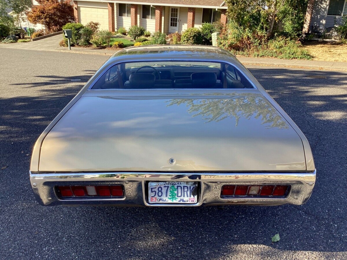 The Tunisian Tan Metallic paint looks like it was just applied, and the roof wears Plymouth’s optional “laser” stripe that wraps over the C-pillars (it made them go faster). In the center of the hood where there is a large indentation, shiny black paint was added and I don’t recall that was part of the color scheme options list in 1971, so the original owner or whoever has spruced up this automobile thought it would be a nice add-on (it doesn’t work for me).
