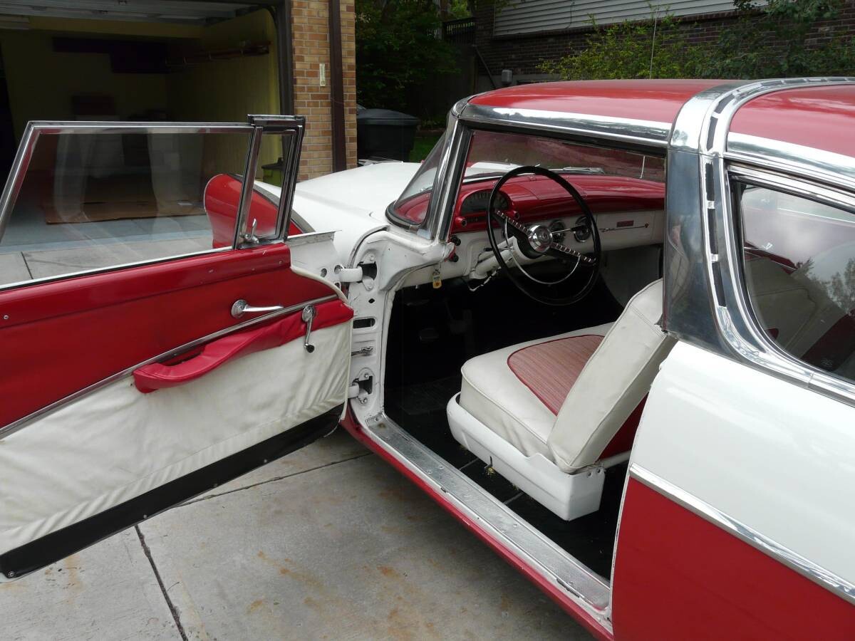Standard fare seems to be under the hood of this Crown Vic, including a 292 cubic inch V8 with a “3-on-the-tree” manually shifted transmission. The body, paint, and interior all look good, with the only ding being that the material on the driver’s side door panel is wrinkled. 1955-56 Fords don’t seem to command the same kind of money today that the 1955-57 Chevies do, and yet the two companies were always head-to-head in trying to outsell one another (with Chevy winning most of the time).