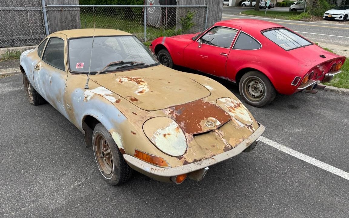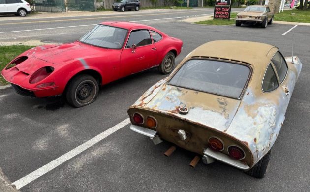 The original GT was in production from 1968 to 1973 with more than 103,000 copies leaving the assembly line. Many of them made it to the U.S. although those figures aren’t known. Mechanically, the GT drew from Opel’s existing parts bin which was largely fueled by sales of the Kadett B model. So, rear-wheel-drive was deployed and the water-cooled 4-cylinder engine rode up front. The standard motor displaced 1.1-liters, good for 67 hp, while a 102 hp 1.9-liter 4-banger was optional. We assume both of the seller’s cars have/had the latter as it was much more popular.