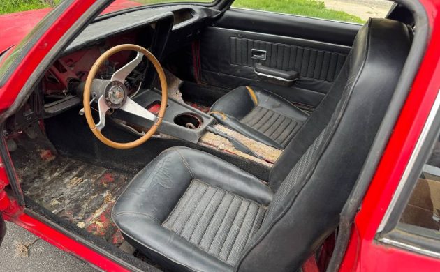 All GTs used manually operated hidden headlights and some of the hardware is missing from one of the seller’s cars, both being 1969 models. The tan example is the better vehicle and is the most complete of the two Opels here, retaining its powerplant and 4-speed manual transmission. But the interior is nicer than the red car which is a roller.