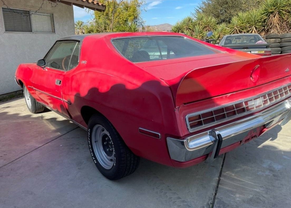 Though the AMX was a 2-seat GT style car built on a shortened Javelin chassis for 1968-70, after that it became a performance option on the 4-seat car it was originally based on. Second-generation Javelins and AMXs were in production from 1971-74 and just 3,220 of the latter were built in 1972. Only 825 of them had the 402 cubic-inch V8 like the one in the seller’s car. When we last saw it, this AMC was painted red (faded) and patches of earlier rust had been repaired.
