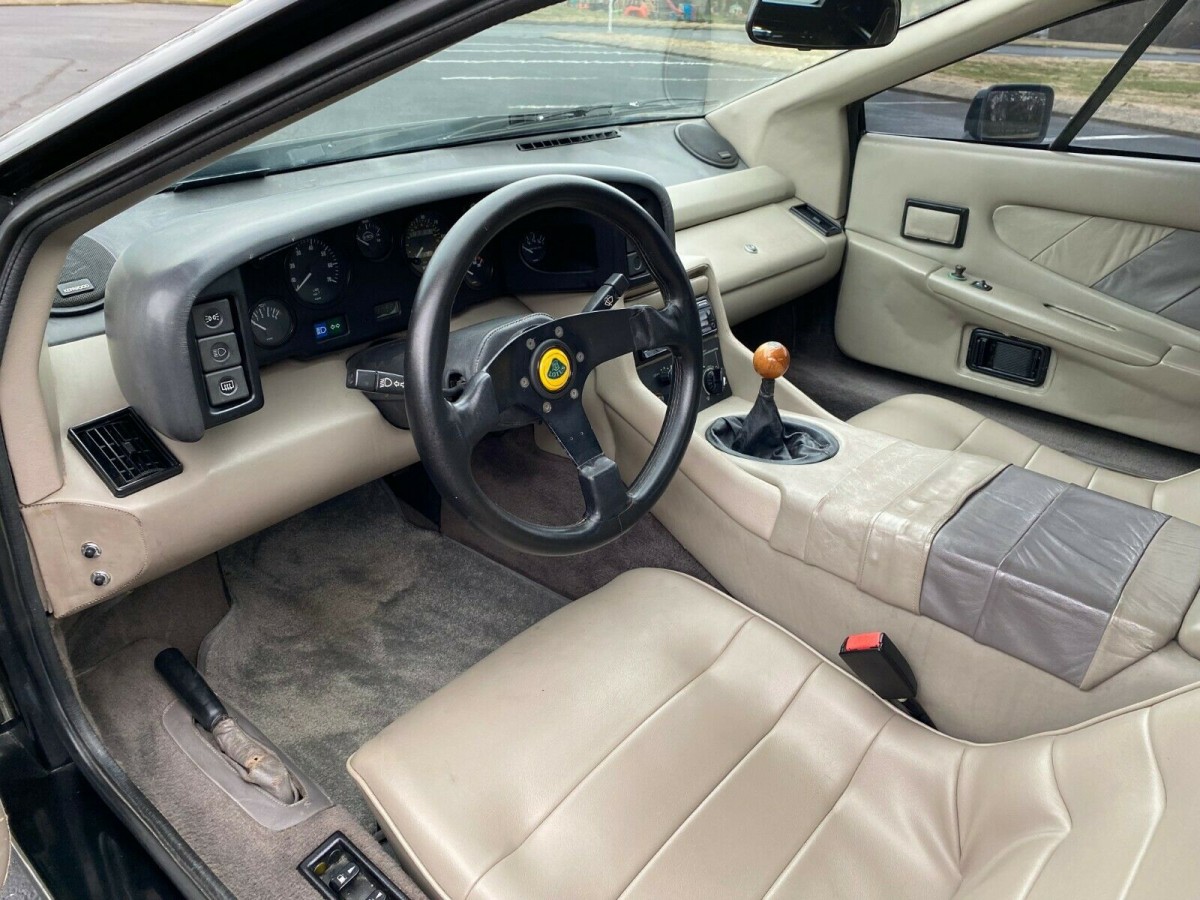 Stevens softened the lines of the Esprit, and, taking advantage of new materials and manufacturing methods, expertly threaded the needle of updating the car while ensuring that it could never be taken for anything other than a Lotus Esprit. Better yet, the engine and suspension delivered on the promises made by the beautiful lines. The engine remained the venerable Type 910, but with turbo and Bosch fuel injection it made 215 horsepower and 220 lb.ft. of torque, giving the lightweight car a top speed of over 150 mph and a zero to sixty time of under five-and-a-half seconds. The seller says that the turbo on this one has been reworked to perform even better.
