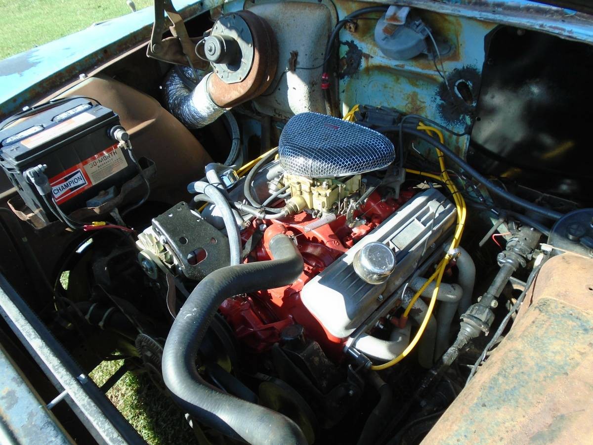 I’m wondering what “runs and drives” means, when the fuel system isn’t connected? Maybe pulling from a jug strapped to the front fender? Maybe that’s what’s hiding up in that big fake scoop…. A gravity-flow fuel container!