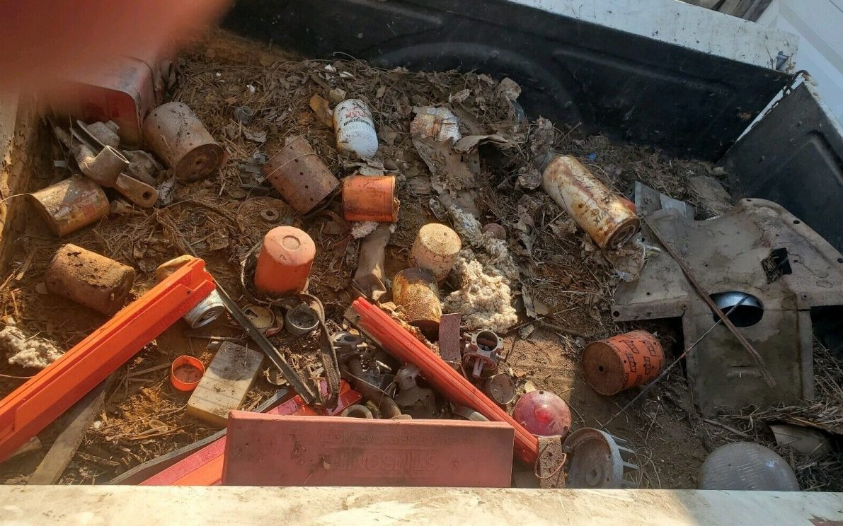 The seller suggests that the cargo bed is pretty solid. That must be based on an underside inspection because I don’t know how that could be determined from the topside considering the mound of “stuff” that has been dumped in there. Anyone need a used oil filter? There are two images of the underside and while not very revealing, nothing leaps forward as a problem.