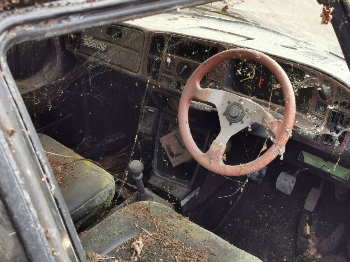 Details like the Momo wheel and driving spotlamps on the nose tell you that the owner was an enthusiast at one time, despite what’s happened in recent years that prompted him to leave this classic 900 Turbo rotting in the garden in the backyard. The seller recounts that he was always unsure of what do with the car when he finished driving it, and that indecision is what’s left this 900 in such a sorry state. I’m not sure if bidders see money in the parts that it comes with, or if they’re anxious to swap those bits onto their more deserving project cars. Of course, the silver lining theory would suggest that someone is going to restore this in-period modified Saab back to its original glory, but that’s a heavy lift that will far outspend the car’s current value.