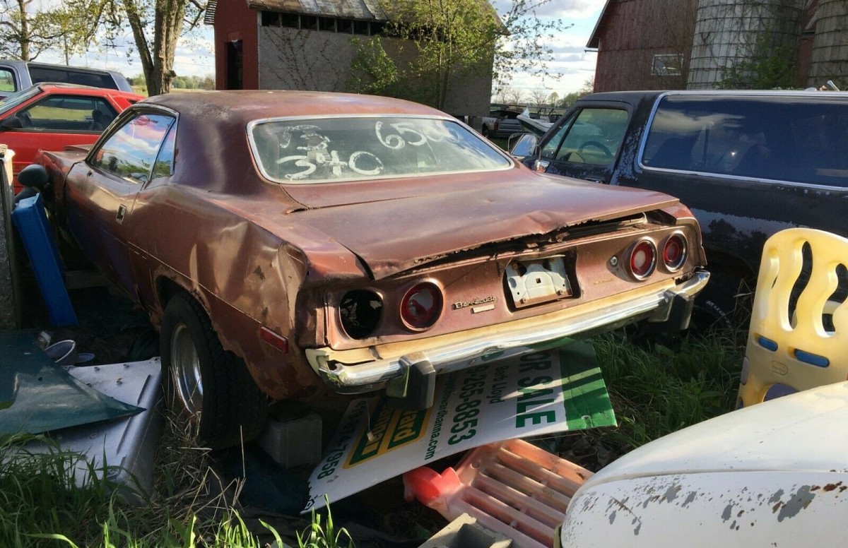 This Barracuda was a 318 car, the ‘cuda would be the 340 car, so this wouldn’t be an original. As it sits, (IMO) it is only a parts car. With so much of the sheet metal rusted away, I’d be concerned that even using a forklift would twist what remained of the unibody. With all of the rust that can be seen, there might be $1,900 worth of usable parts here, including the engine. GLWTA!! :-)