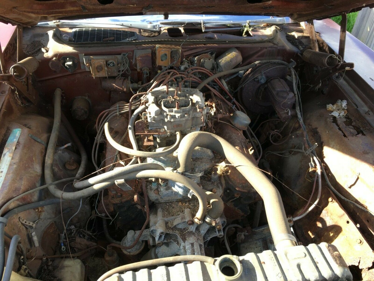 Are you sure Fred Flintstone did not drive this car? I do not believe that the only body part not dented, dinged, hit, or missing is the roof panel. Could it be a 318 V8 with a thermo quad carb set up on it ? I would be hard-pressed to give more than $65.00 for this masterpiece.