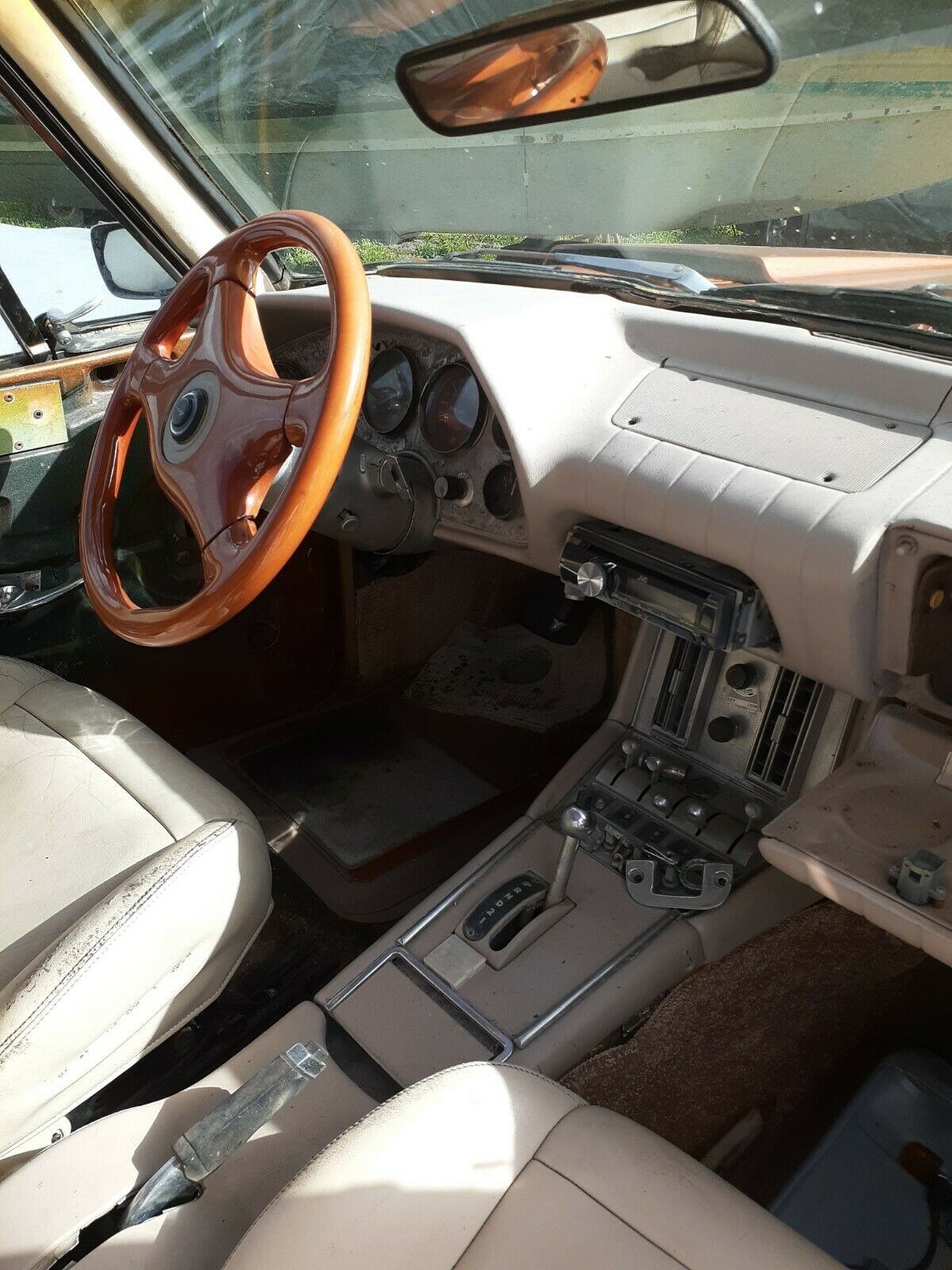 The interior is a bit of a mess, and it’s a shame as the Avanti cockpit is one of its high points when in good order. The steering wheel looks like a cheap aftermarket model, and either a higher-end wood-rimmed wheel would look good here, or just re-install an OEM wheel. The door panels are a mixed bag, as the driver’s side is missing and the passenger side appears to be a homemade replacement. The factory Avanti panels tend to feature leather surfaces and two-tone color schemes, and what we have looks like particle board wrapped in dull, brown cloth. The center stack sports a non-factory radio that isn’t mounted securely, which, in concert with the wheels, seems to suggest a previous owner saw the Avanti as more of a Honda Civic than a classic American luxu-performance car.