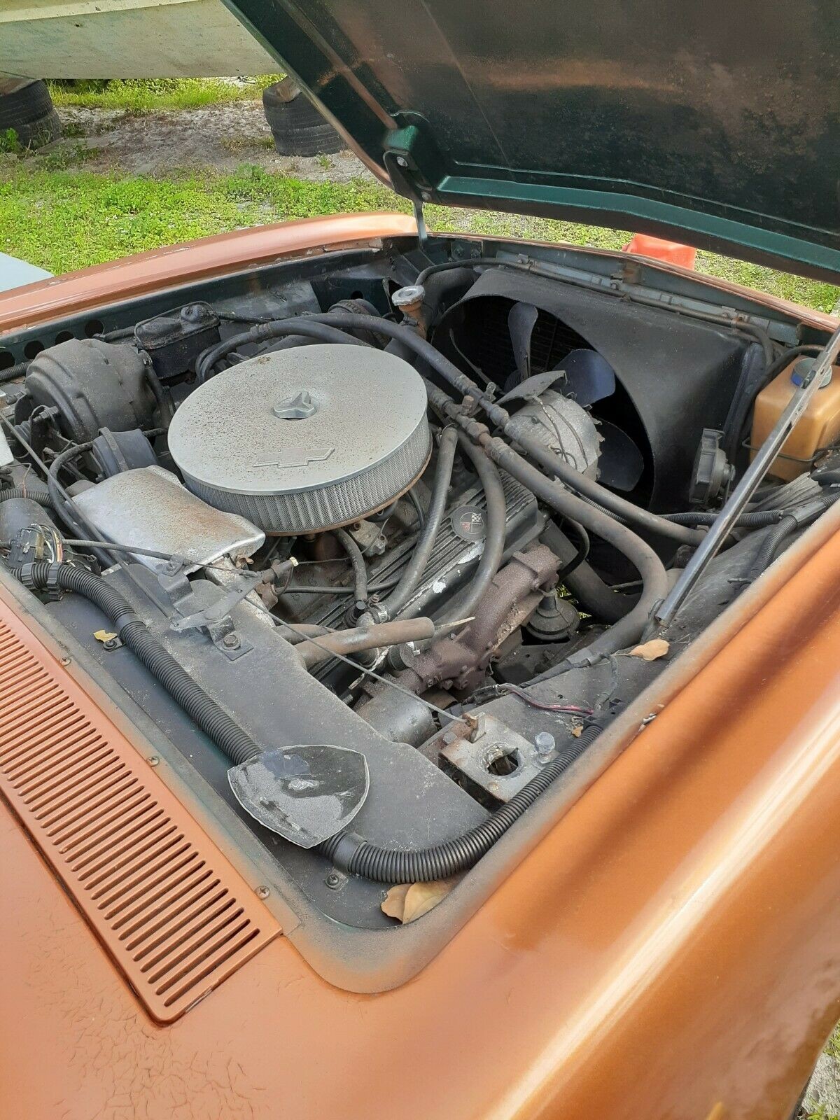 There must be an interesting story here, from all the cars stashed in this backyard to the aftermarket wheels this Avanti rolls on. The color struck me as being non-factory, but some Avantis did come in a shade known as Cinnamon Firemist, and this sure looks like a dead ringer for it. The rust on the bumpers is a bummer, as they’ll have to be re-chromed. The listing says “…very little, if any, rust underneath,” which isn’t terribly confidence inspiring, but it could also just be an admission that there’s some surface rust on the suspension components, which is nothing to worry about. But Lord, those aftermarket wheels are horrid. That paint scrape in the door is concerning, possibly indicating the current paintjob isn’t the first one.