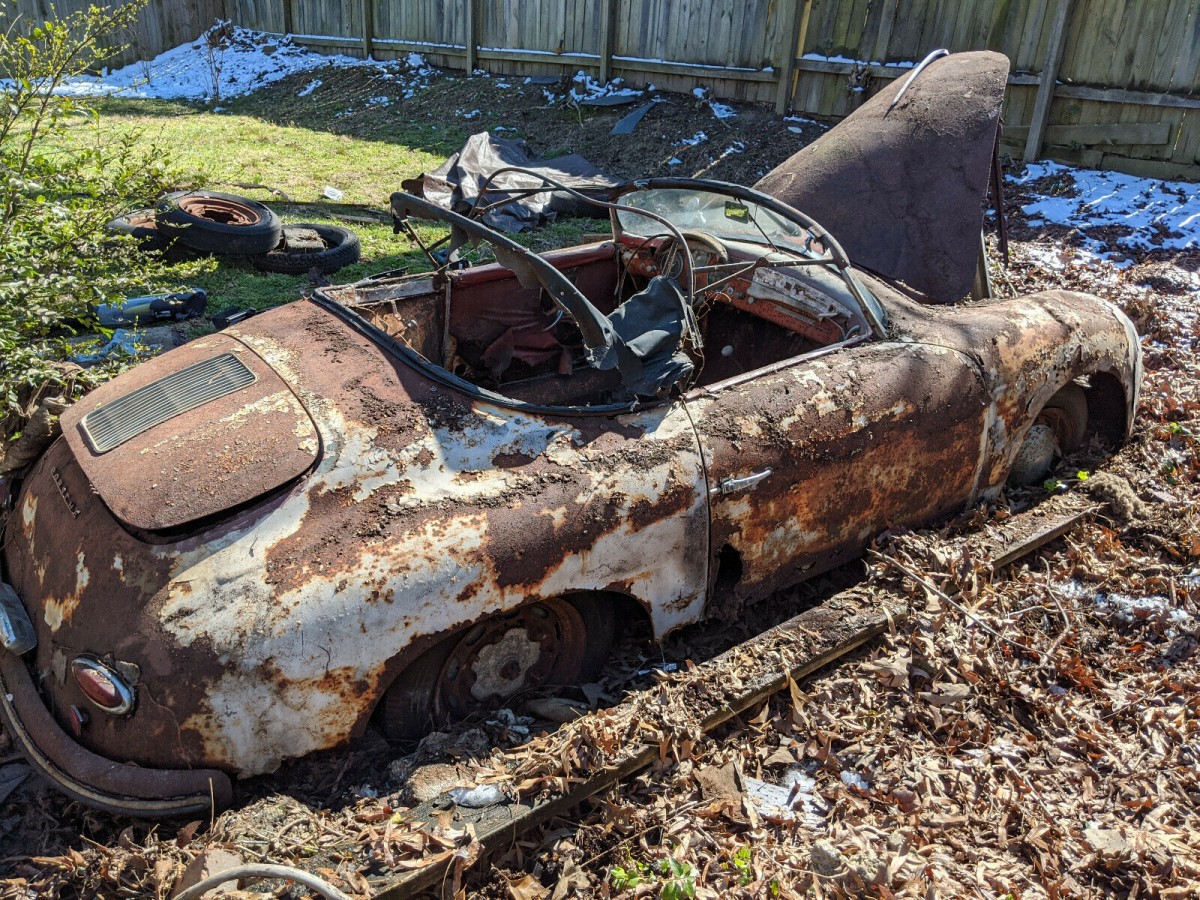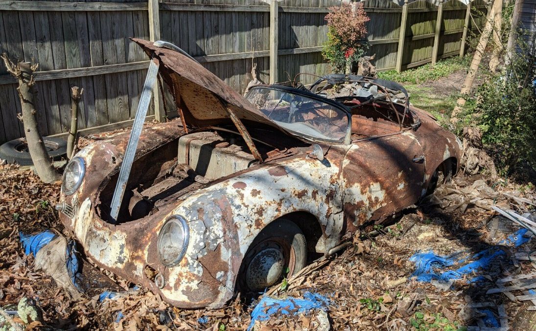 During the 1950s, foreign manufacturers were beginning to infiltrate the American market with small, sporty cars, designed to look good as well as win races. After a Porsche 356 won its class at the 1951 Le Mans 24 Hours, motorsports enthusiasts began to take note. Initially introduced for the 1948 model year, the Porsche 356 was offered in a variety of body styles, until the end of production in 1965. One of the most popular among collectors has been the second generation, known as the 356A, produced from 1955 to 1959. Our feature car could be described as a little worse for wear, as it hasn’t moved in over 40 years from the back yard in which it is currently taking up residence. Located in Richmond, VA, and found here on eBay, it may prove that looks can be deceiving, with a current bid of $105,001.