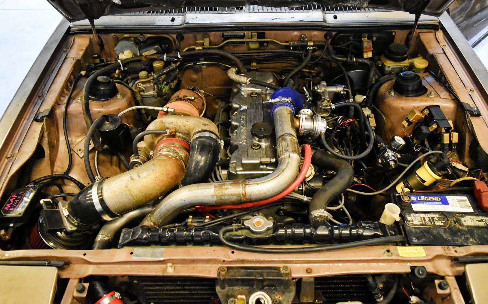 Unlike the front wheel drive Eagle Talon (Mitsubishi Eclipse or Plymouth Laser, take your pick) the Conquest is a rear wheel drive platform. It was developed to compete with the Toyota Supra, Nissan 300ZX and Mazda RX-7. Power came from either the 2.0 liter 4G63 that can be found in the Eclipse or the 2.6 liter 4G54, both of which were turbocharged. However, for the North American market all Conquests were equipped with the 2.6 liter inline 4. Being a TSi means this Conquest features wider fenders, an intercooler and 197 horsepower. The seller claims to have recently rebuilt the engine from the crank up, but sadly it appears that they did some customization to the turbo system while they were in there.