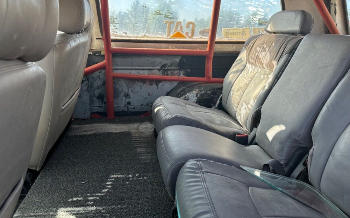 As for upfront, the buckets, which aren’t in very good shape, appear to have been poached from something with a more luxurious bearing – at least based on the electronic controls. There is a roll cage that has been installed but my initial thought is that it looks a bit lightweight. As for the dash, it shows like it was on the receiving end of a paintbrush dipped in a flat black mix – it’s fugley!