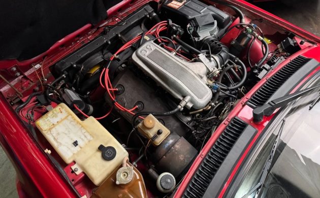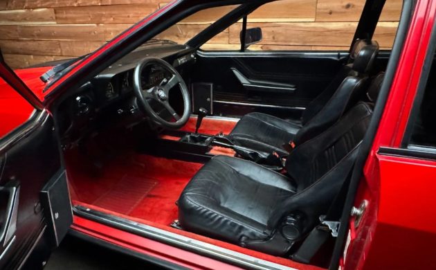 Inside, the cabin remains largely original. The leather seats retain their distinctive red-and-black “candy cane” piping, and the original carpeting is still in place. The seller notes only minor flaws, including a small hole on the rear seat bottom and a few minor cracks on the dash. All gauges and electrical systems are reported to function properly, with the exception of the air conditioning, which does not currently blow cold.