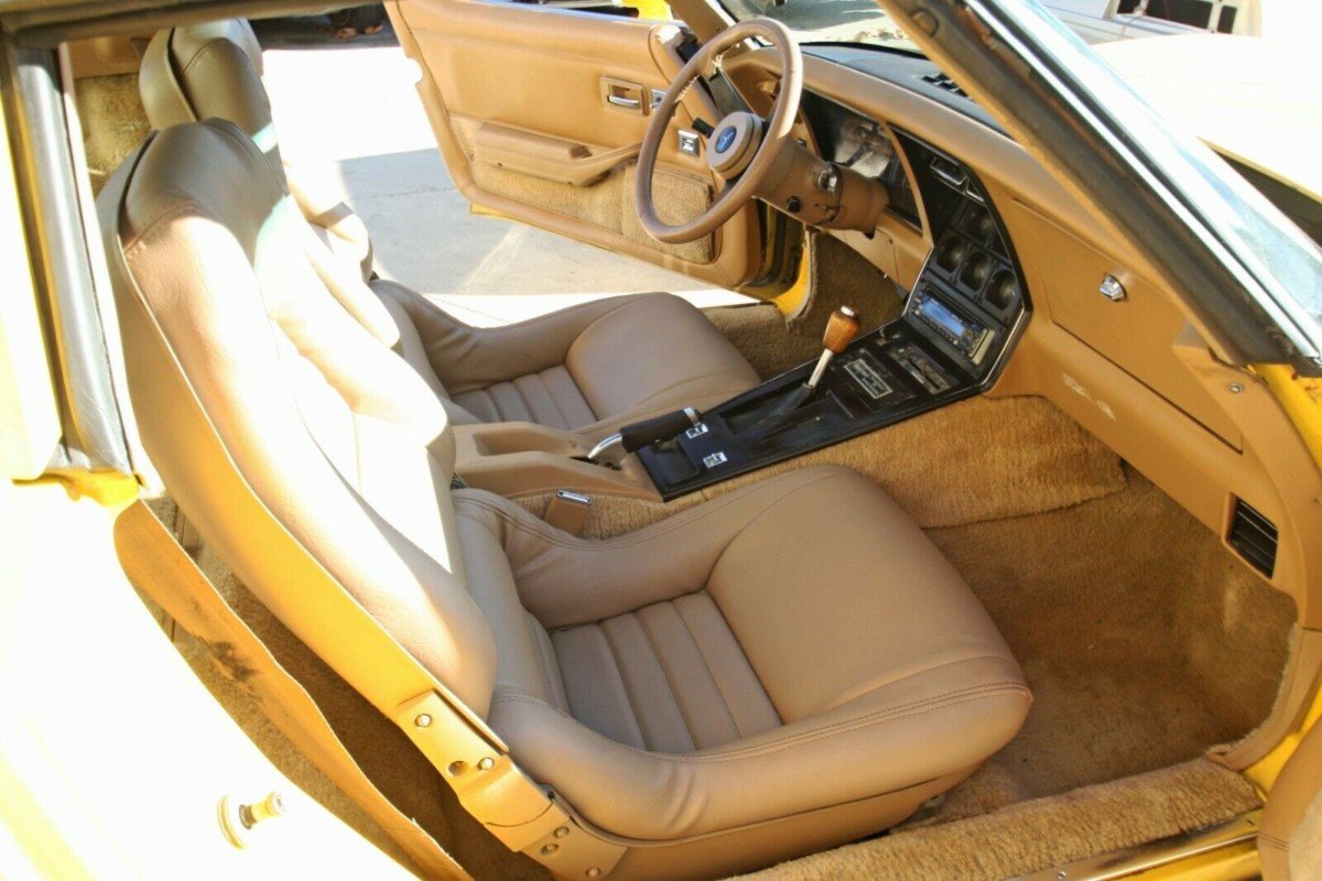 The tan interior is an interesting choice. I would have thought a black interior would be more likely option with the yellow paint but the tan interior does look inviting and is probably a lot cooler on those hot summer afternoons. The seats look new and the seller states that they have been reupholstered. The car is equipped with an aftermarket radio, power driver seat and cruise control. The seller states that the car has been stored since 1992 and has recently had new brakes, tires and a battery installed. For California buyers, the car recently passed its smog test. All 1981 Corvettes came with a 350 cubic inch V8 engine that produced 190 horsepower. This was basically the L-48 engine from prior years but it was designated the L-81 for 1981 only.