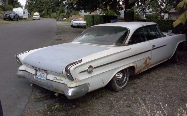 The interior’s condition is not that bad. It will obviously need carpet and upholstery at some point, but they seem to be useable as it sits. A set of seat covers and some good floor mats would be a cheap option to get it back on the road. Under the dash, there appear to be an aftermarket tachometer. When you factor in the high horsepower engine and the fact that this year’s Chrysler 300 weighed 300 pounds less than the 1961s, who could blame a guy for proving to others that this luxury cruiser was more than they bargained for!