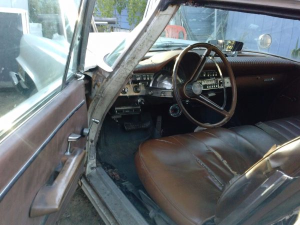 Under the hood, Chrysler 300 H models sported a 413 cubic inch V-8. I assume this is an H model, as the lesser series 300s packed 383 cubic inch engines. Unfortunately, the owner does not specify so. These could also be equipped with a cross ram manifold with two four barrel carburetors, but this one appears to have a single carb manifold. There are some non stock components visible, such as that yellow coil and the valve cover wing nuts, so maybe the owner has a cross ram manifold for it. We can only hope. On the good side, the air conditioning system seems intact, and the belts are still connected. I doubt it is still functioning, but I’ll bet the A/C is repairable.