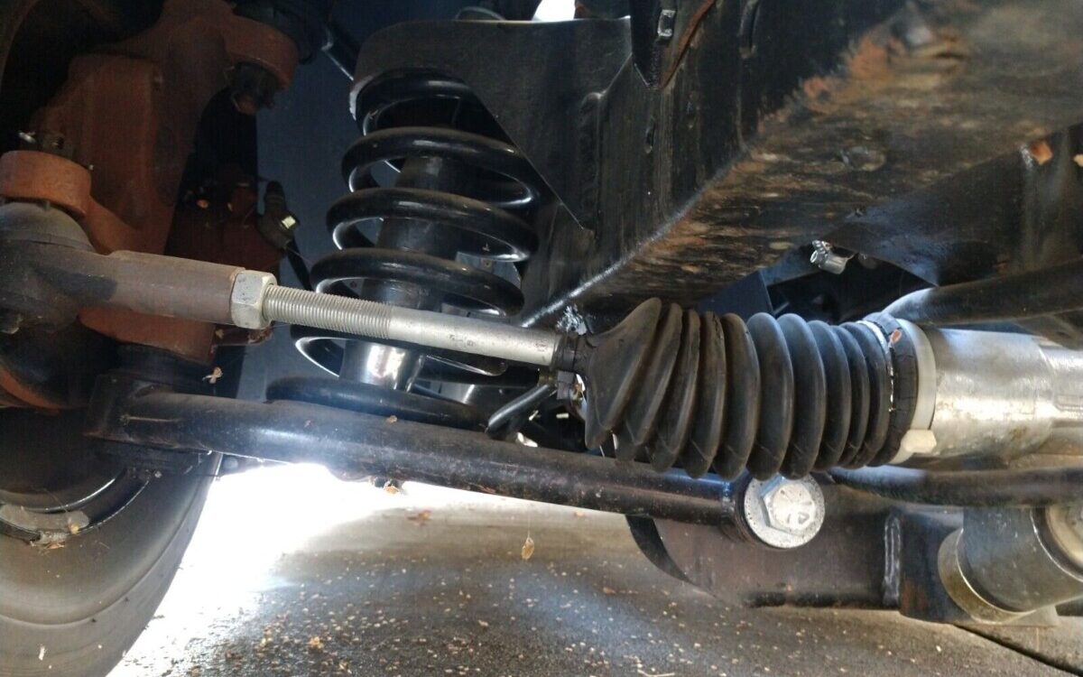 The lower A arm should be parallel to the ground. It also looks like there isn’t enough clearance between the steering and the frame.
