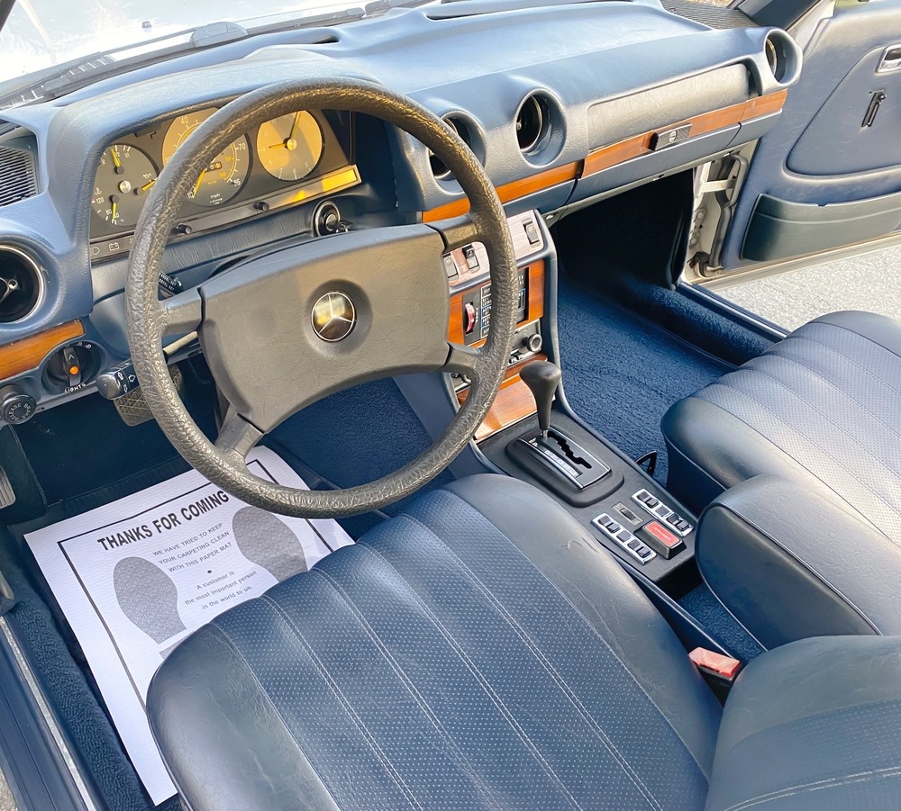The interiors of vintage Mercedes cars are well-known for the durability, and considering how many still look fairly minty even after putting in 300K miles or more of daily duty, it’s no surprise that a low mileage cabin practically looks like it just left the showroom. The wood trim, the MBTex seating surfaces, the carpet, the plastics around the console – it all looks wonderful. The steering wheel shows no signs of excessive wear and the dash is uncracked. The super detailed photos reveal some signs of use on the switchgear, like the headlight switch and the parking brake release, but who cares? Replace them if you seek perfection. The factory Becker radio remains in place, too.