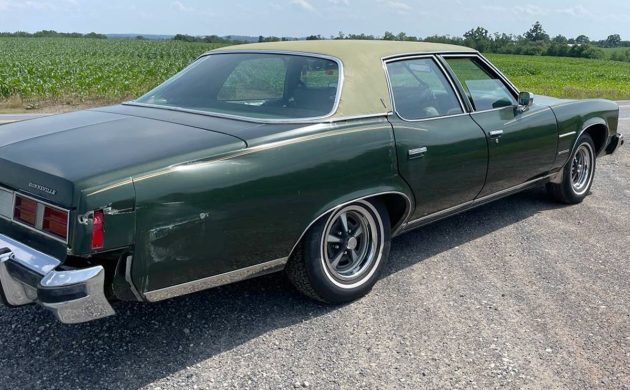 Pinemist Green is a perfect color for this 1974 Pontiac Bonneville. Nothing says the 1970s like green or brown, big chrome bumpers, and gigantic 19-foot-long American cars that get 11 mpg. There’s some work to do on this big cruiser, but if you’re up for it, you can find it posted here on craigslist in Fredericksburg, Pennsylvania, and the seller is asking $4,000. Here is the original listing, and thanks to Mitchell G. for the tip!